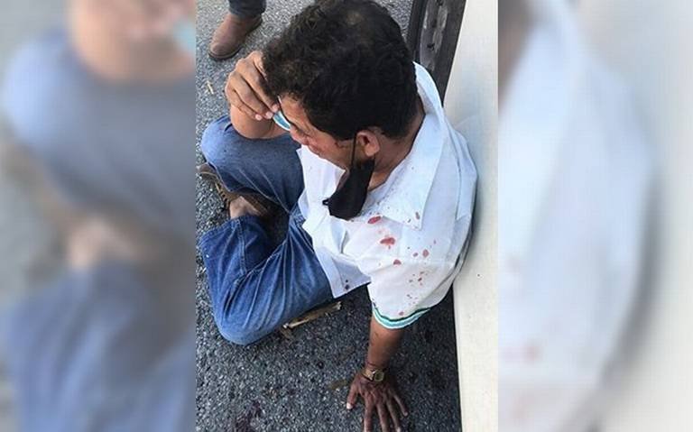 El hombre sin identificar quedó tirado sobre una banqueta con una aparente abertura en el rostro y la ropa manchada de sangre.