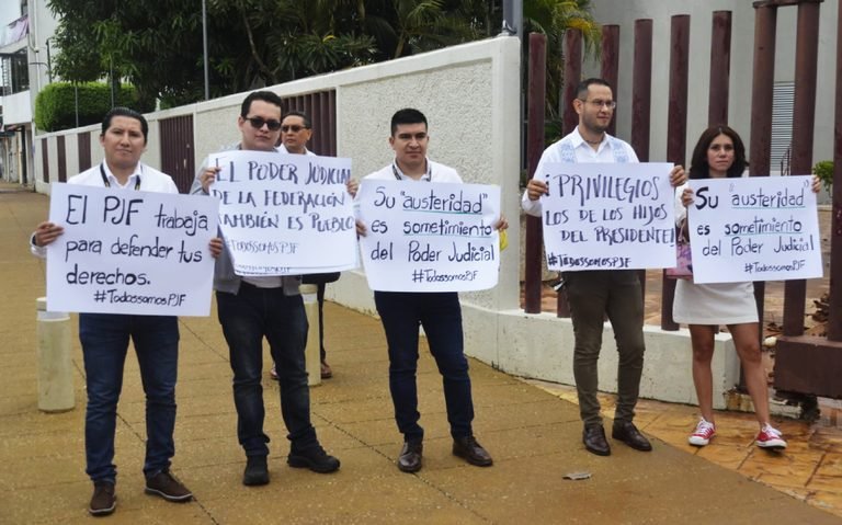 Con leyendas de “El PJF trabaja para defender tus derechos”, “Poder Judicial de la Federación también es pueblo” y “No te confundas: El recorte presupuestal no busca austeridad. Lo que el gobierno pretende es amedrentar al único poder que no está bajo el control de Morena…” escritas en cartulinas y lonas, el grupo de burócratas federales se manifestaron fuera de las oficinas ubicadas en la colonia Gaviotas Norte.
