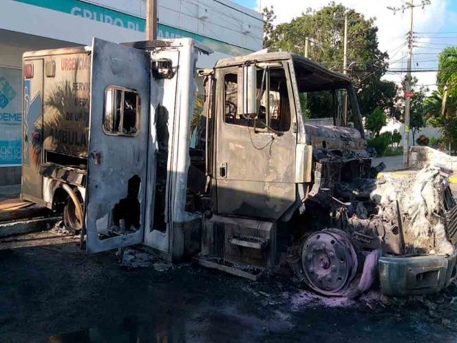 Queman ambulancias de hospital privado en Cancún por no pagar derecho de piso